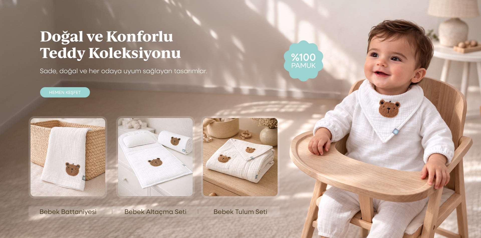 Yenidoğanlar için en saf pamuktan üretilen ilk dokunuş setleri.