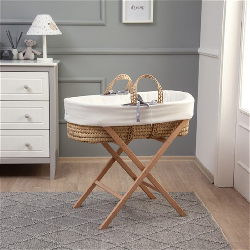 Moses basket set consist of three seperate pieces. Moses Basket Textiles Set: • 1 pc mattress • 1 pc pique • 1 pc sheet • 1 pc small pillow • 1 pc basket cover • Inner base dimensions : 30x74 cm • Made of 100% cotton fabric • Can be washed at 30 degrees. • Do not use bleach. • Designed and produced in Turkey. Moses Basket: • Inner base dimensions : 30x74 cm • Basket height is 22 cm. • Baskets are handmade. • Clean with a damp cloth. • Imported product. Moses Basket Wooden Stand: • Height is 77 cm. • Upper frame width is 40 cm. • Upper frame length is 80 cm. • Made of 100% wood. • Stand can be folded. • Clean with a damp cloth. • Compatible with Funnababy moses baskets. • Designed and produced in Turkey.